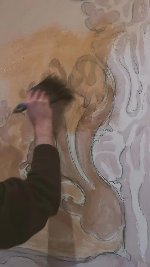 Early stages of the Winter work for @birnamhotel #felixzandt #scottishlandscapepainting #painting #mural